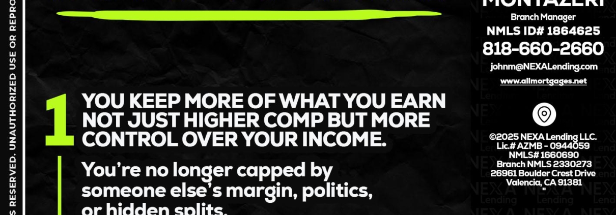 Hi, my name is John Montazeri. I’m a Loan Officer with NEXA Lending LLC., offering personalized mortgage solutions, fast customized quotes, great rates and service with integrity.
