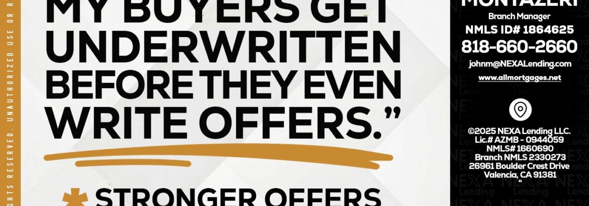 Hi, my name is John Montazeri. I’m a Loan Officer with NEXA Lending LLC., offering personalized mortgage solutions, fast customized quotes, great rates and service with integrity.