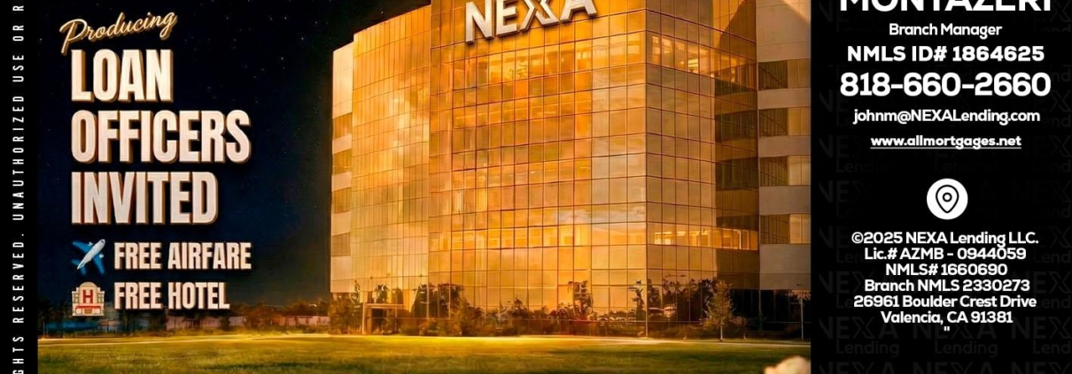 Hi, my name is John Montazeri. I’m a Loan Officer with NEXA Lending LLC., offering personalized mortgage solutions, fast customized quotes, great rates and service with integrity.