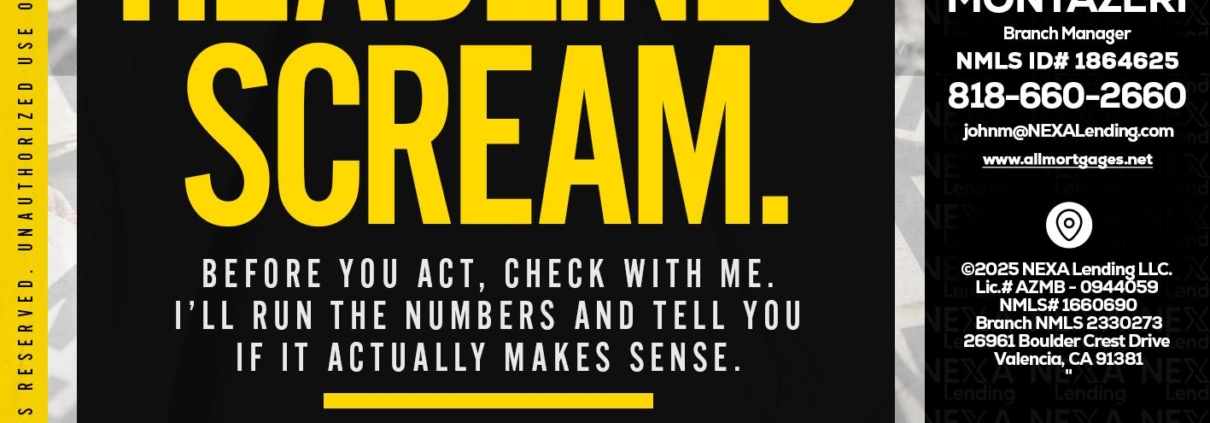 Hi, my name is John Montazeri. I’m a Loan Officer with NEXA Lending LLC., offering personalized mortgage solutions, fast customized quotes, great rates and service with integrity.