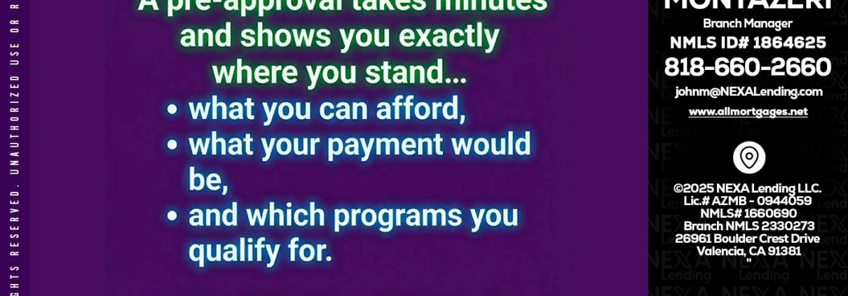 IF YOU THINKING - John Montazeri -Branch Manager - Property Lending SpecialistHi, my name is John Montazeri. I’m a Loan Officer with NEXA Lending LLC., offering personalized mortgage solutions, fast customized quotes, great rates and service with integrity.