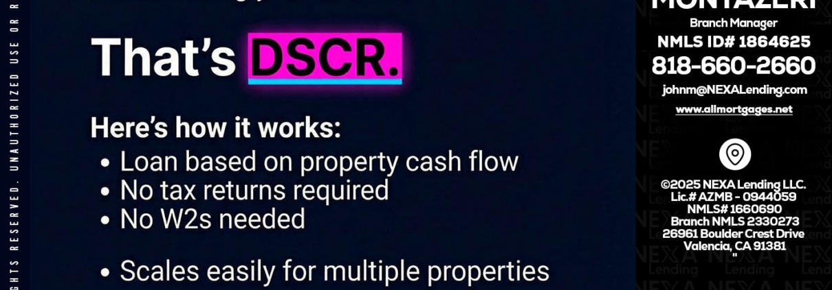 Hi, my name is John Montazeri. I’m a Loan Officer with NEXA Lending LLC., offering personalized mortgage solutions, fast customized quotes, great rates and service with integrity.