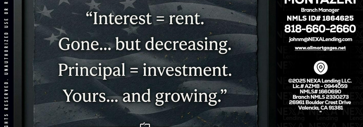 Hi, my name is John Montazeri. I’m a Loan Officer with NEXA Lending LLC., offering personalized mortgage solutions, fast customized quotes, great rates and service with integrity.