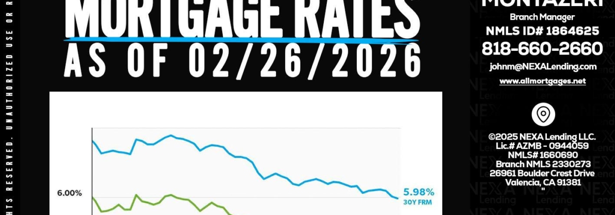 Hi, my name is John Montazeri. I’m a Loan Officer with NEXA Lending LLC., offering personalized mortgage solutions, fast customized quotes, great rates and service with integrity.