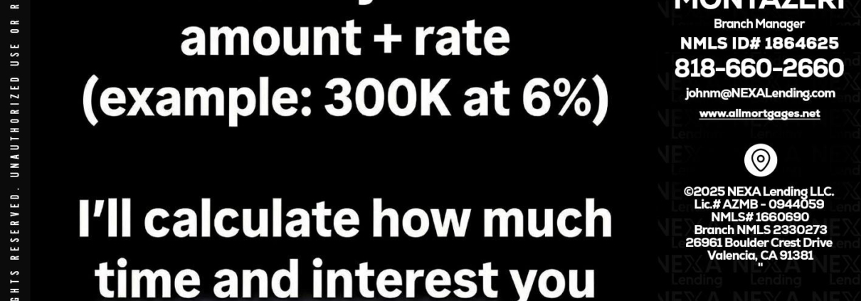 Hi, my name is John Montazeri. I’m a Loan Officer with NEXA Lending LLC., offering personalized mortgage solutions, fast customized quotes, great rates and service with integrity.