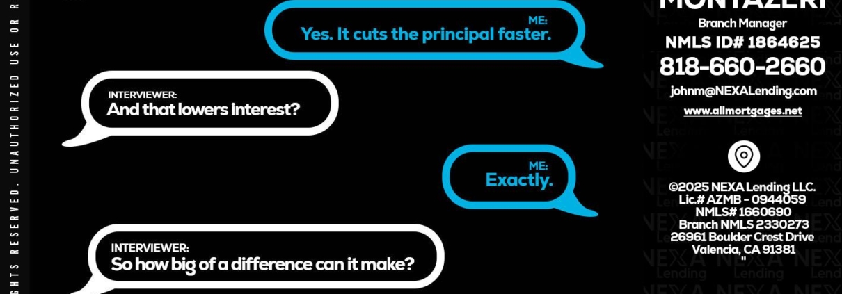 Hi, my name is John Montazeri. I’m a Loan Officer with NEXA Lending LLC., offering personalized mortgage solutions, fast customized quotes, great rates and service with integrity.