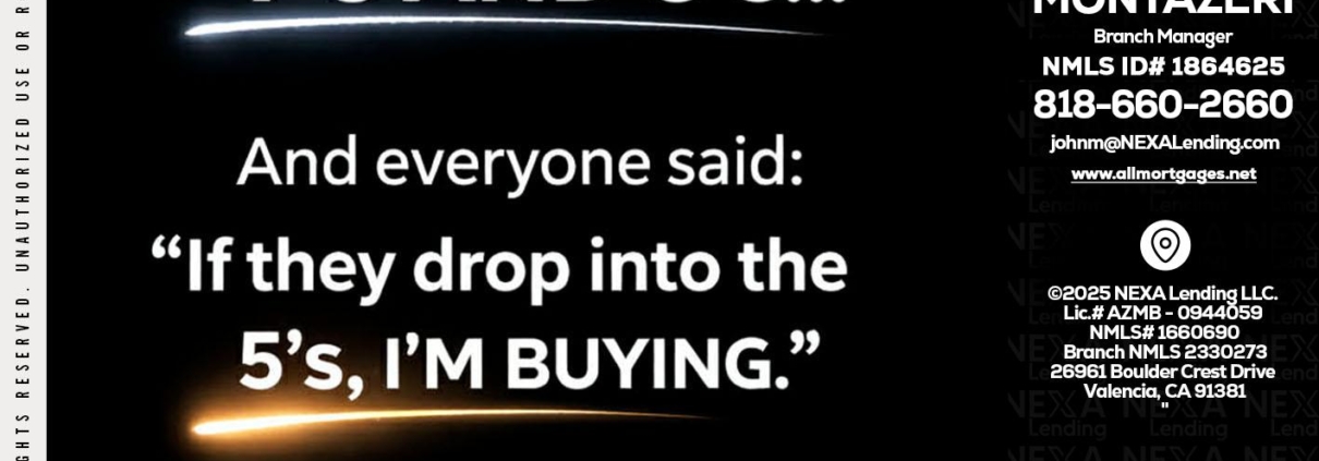 Hi, my name is John Montazeri. I’m a Loan Officer with NEXA Lending LLC., offering personalized mortgage solutions, fast customized quotes, great rates and service with integrity.