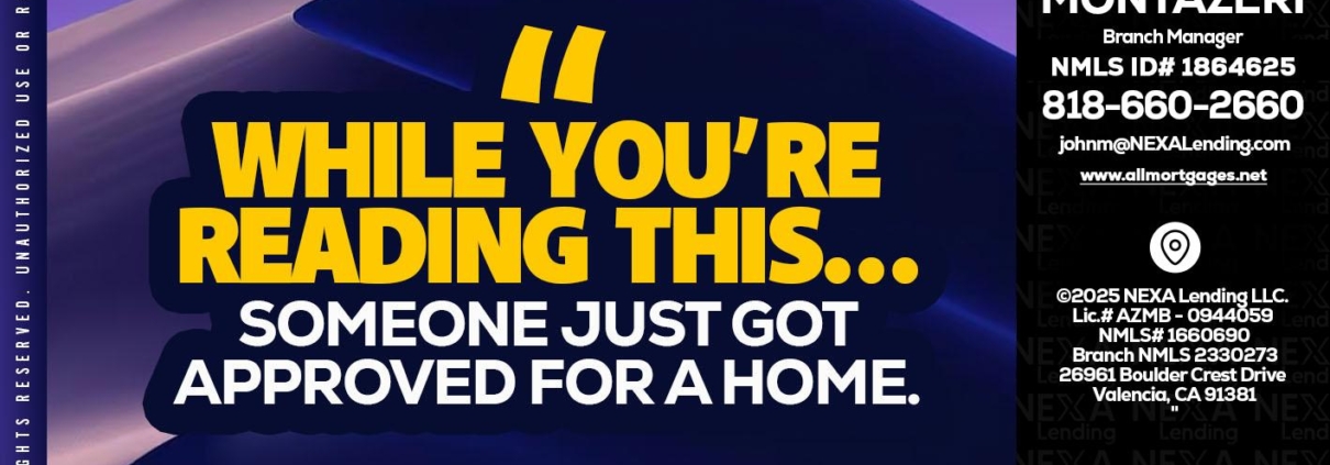 Hi, my name is John Montazeri. I’m a Loan Officer with NEXA Lending LLC., offering personalized mortgage solutions, fast customized quotes, great rates and service with integrity.